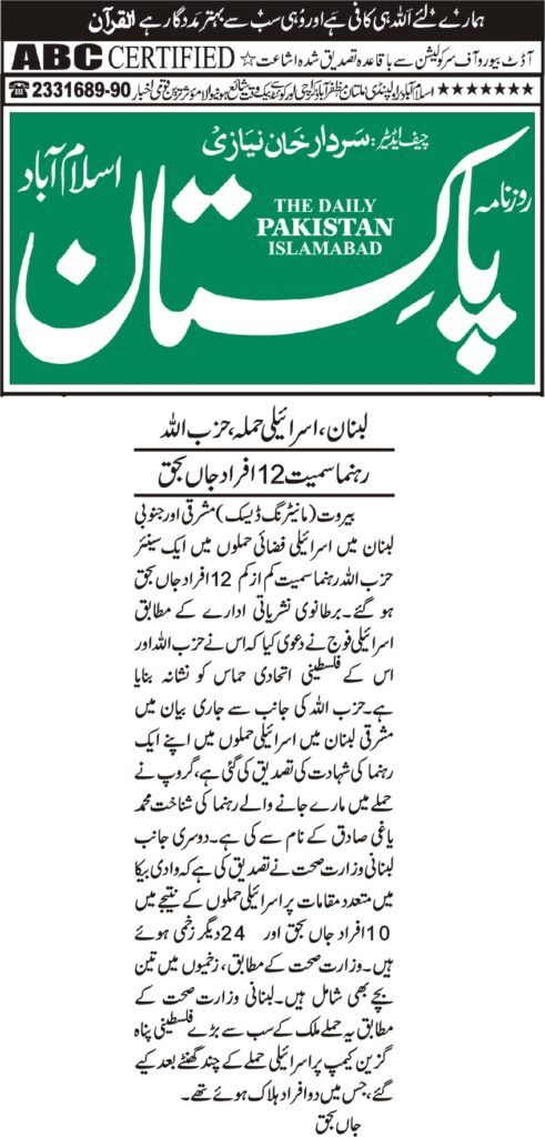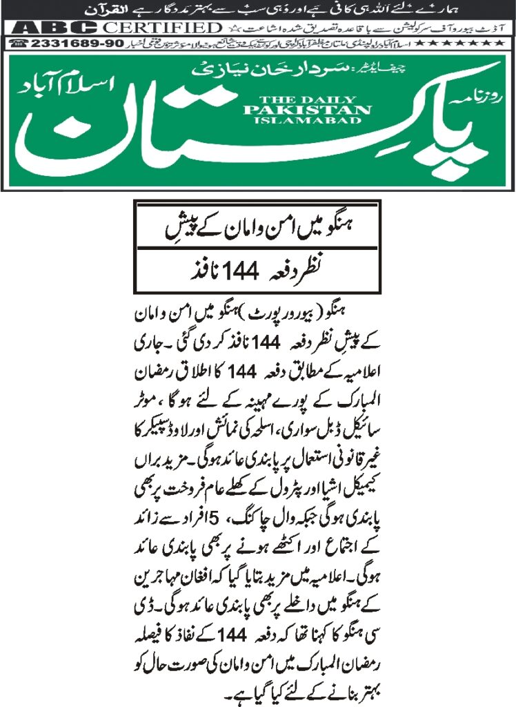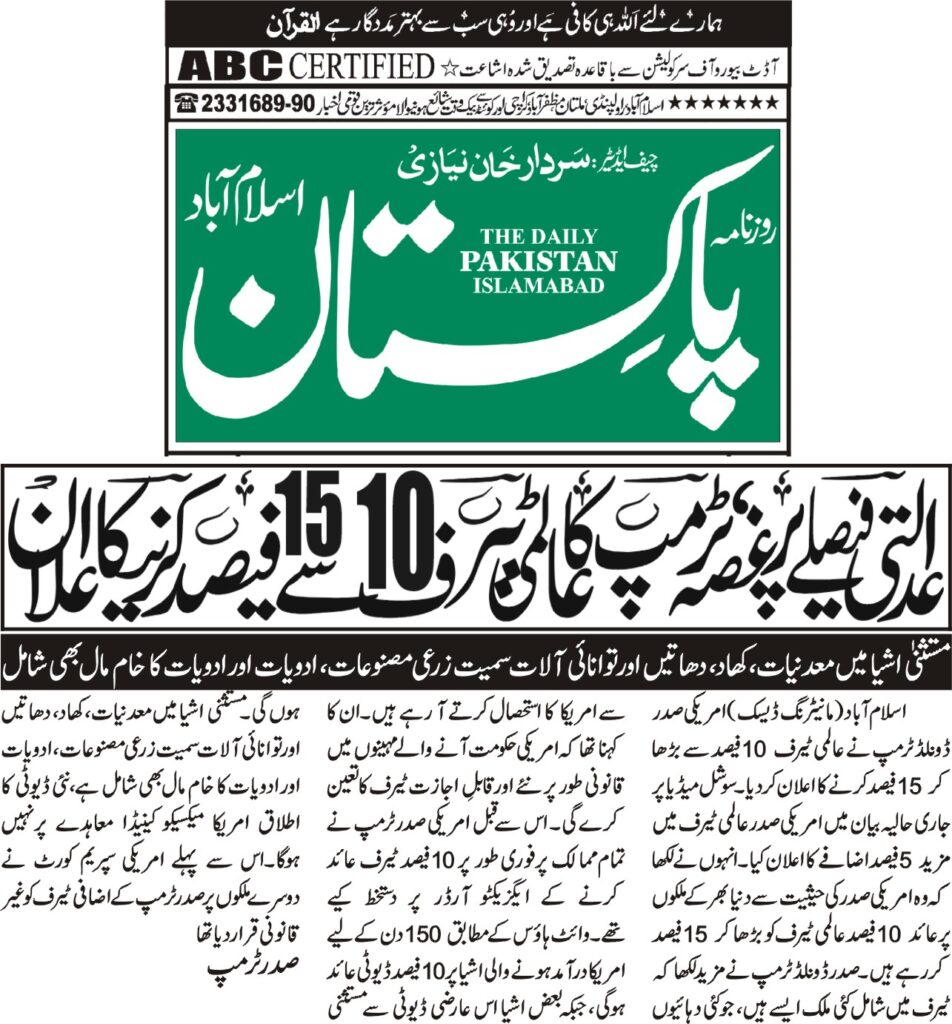 آج کا اخبار